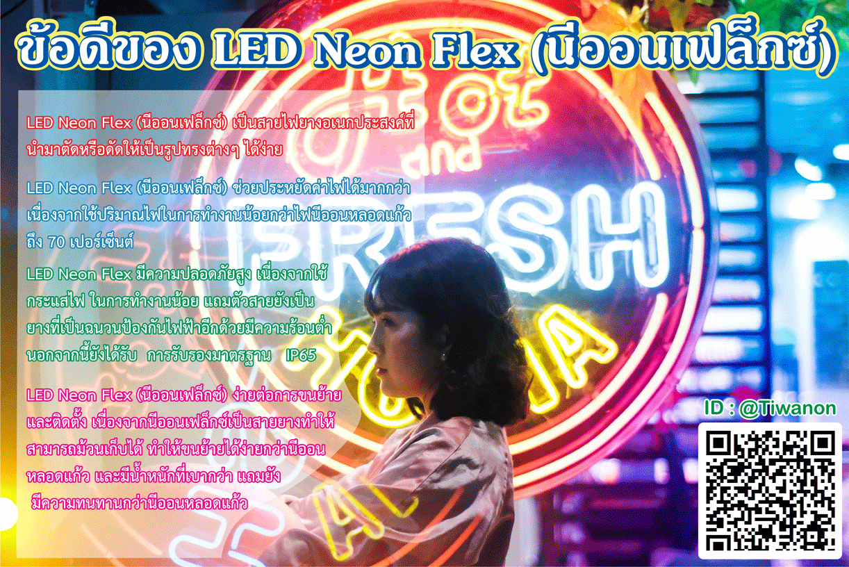 เทรนการตกแต่งด้วยไฟนีออนได้รับความนิยมมาตั้งแต่อดีตจนถึงในปัจจุบัน เพียงแต่นีออนในอดีตที่นิยมกันนั้นเป็นแบบหลอดแก้ว ถ้าคุณลองสักเกตดูดีๆ จะเห็นได้เลยว่ามีร้านค้าหรือสถานที่ต่างๆ จำนวนไม่น้อยเลยทีเดียวที่มีการตกแต่งด้วยไฟนีออน และเมื่อวันเวลาผ่านไปเมื่อเทคโนโลยีมีความเจริญก้าวหน้ามากขึ้นก็ทำให้เกิดนวัตกรรมใหม่อย่างนีออนเฟล็กซ์ขึ้นมา เพื่อเป็นทางเลือกใหม่ให้เราทุกคนได้เลือกใช้นอกเหนือจากนีออนหลอดแก้วแบบเดิมๆ ที่ผ่านมา ซึ่งในวันนี้เรามาดูกันดีกว่าครับว่า LED Neon Flex นั้นมีข้อดีอะไรบ้าง ดังนี้