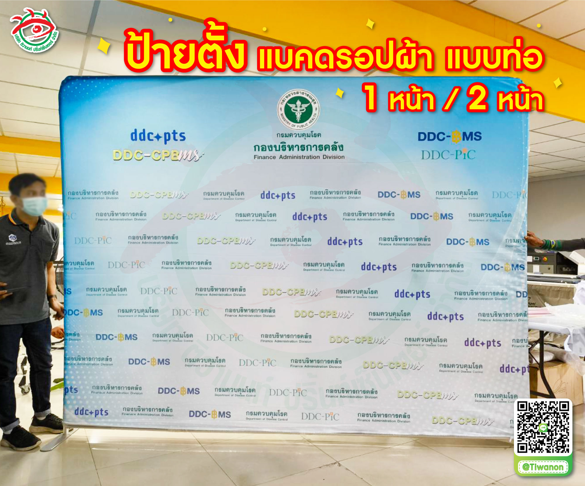 ป้ายผ้าแบคดรอป แบบรูดซิปเปลี่ยนภาพได้ไม่ซ้ำใคร "กรมกองบริหารการคลัง"