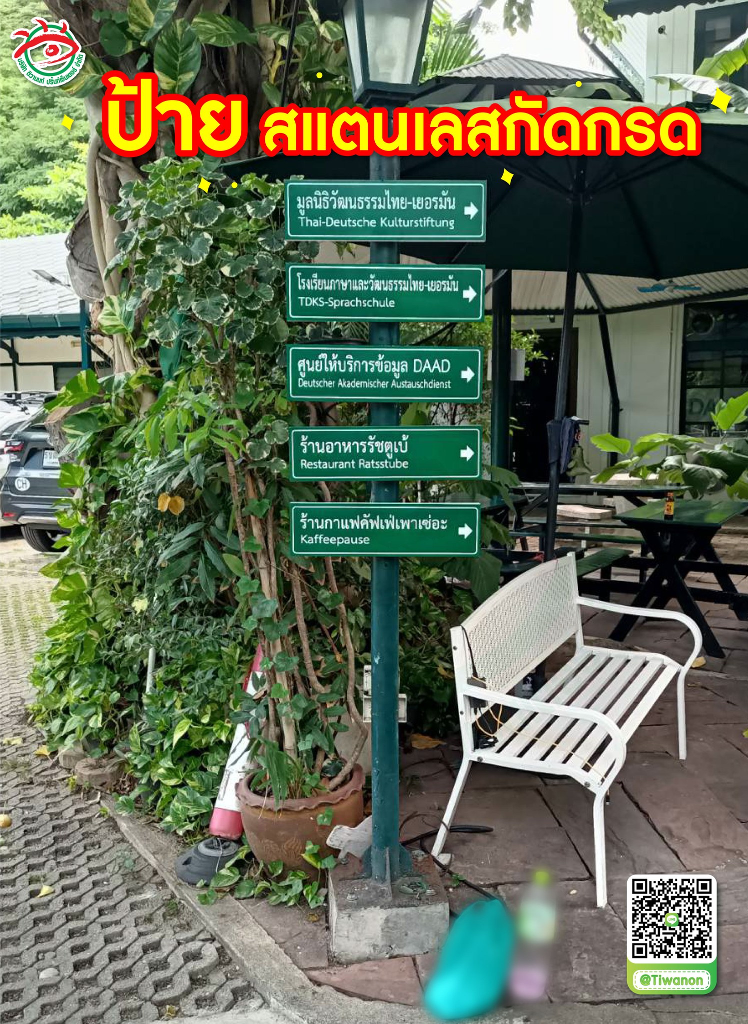 ป้ายสแตนเลสกัดกรดในรูปภาพนี้คือผลงานที่โดดเด่นจากร้านป้ายติวานนท์ ผลิตขึ้นมาเพื่อแสดงข้อมูลและทิศทางในพื้นที่สวนสาธารณะและร้านอาหาร ป้ายเหล่านี้มีความโดดเด่นทั้งในด้านวัสดุ การออกแบบ และความทนทานที่ทำให้สามารถใช้งานได้ยาวนานและคงทนต่อสภาพอากาศภายนอก