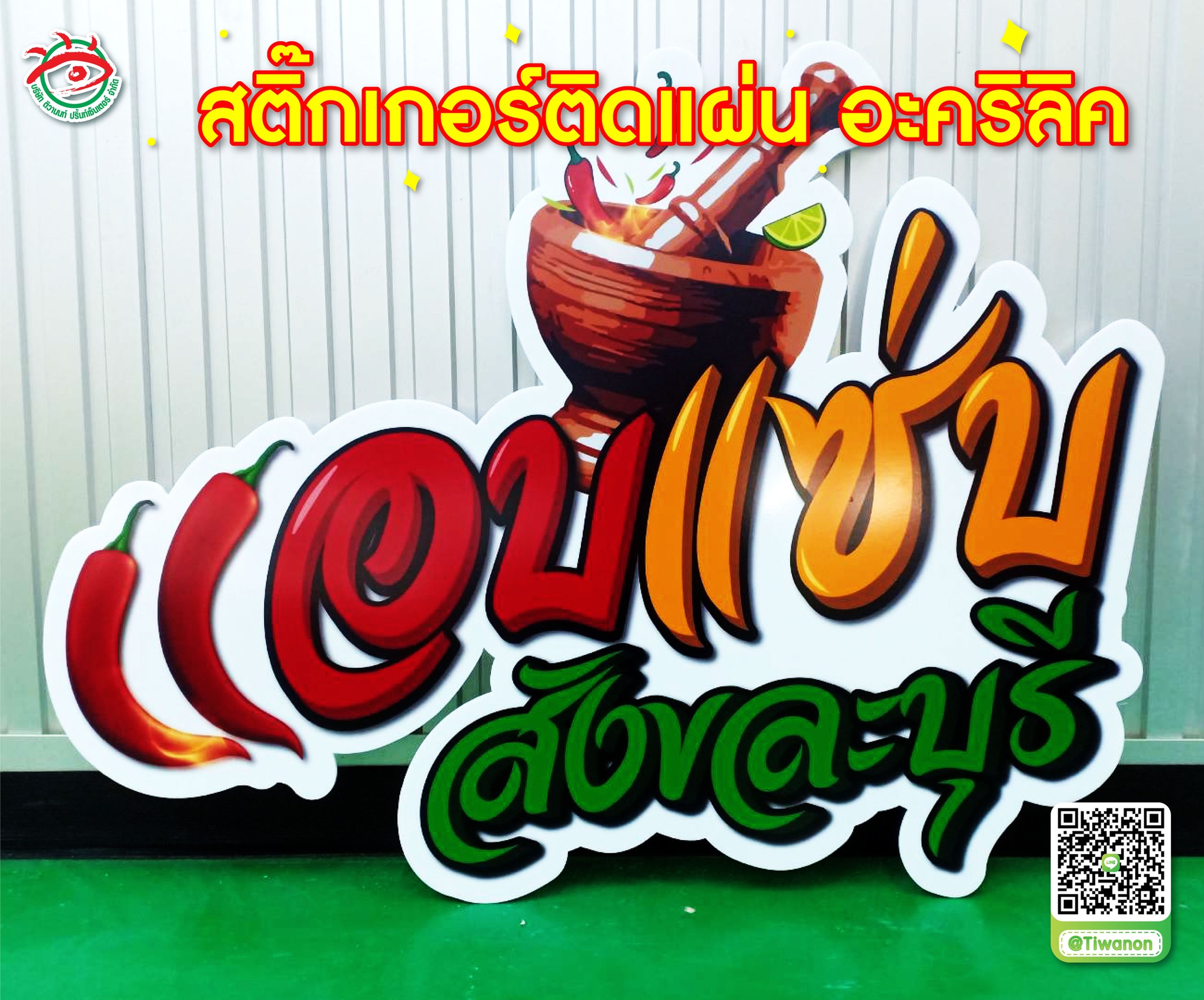 ป้ายสติ๊กเกอร์ติดแผ่นอะคริลิค “แอบแซ่บ สังขละบุรี”