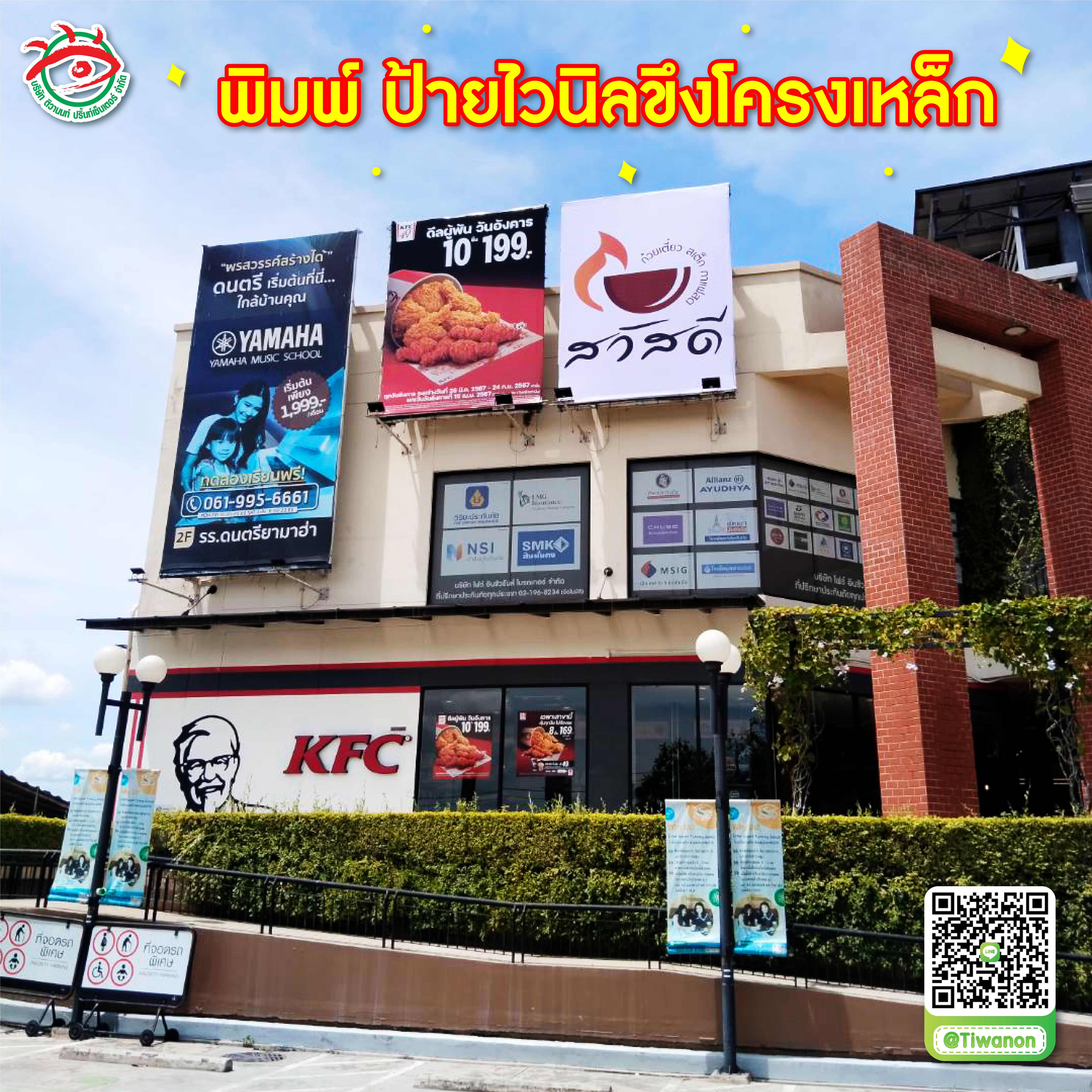 ป้ายโฆษณาไวนิลขึงโครงเหล็ก: ตัวอย่างจากร้านป้ายติวานนท์
