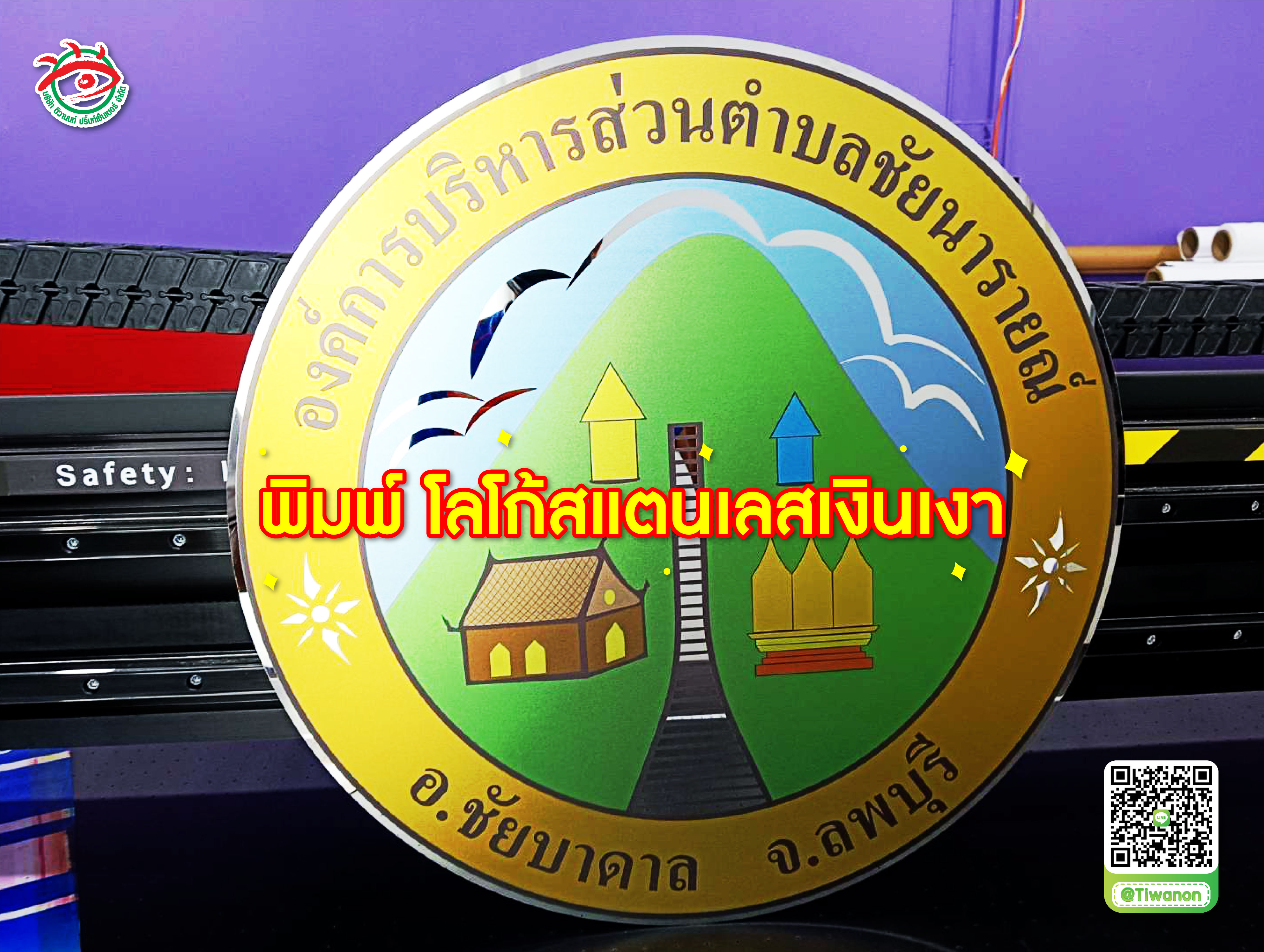 พิมพ์แผ่นโลโก้สแตนเลส "องค์การบริหารส่วนตำบลชัยนารายณ์" | ร้านป้ายติวานนท์