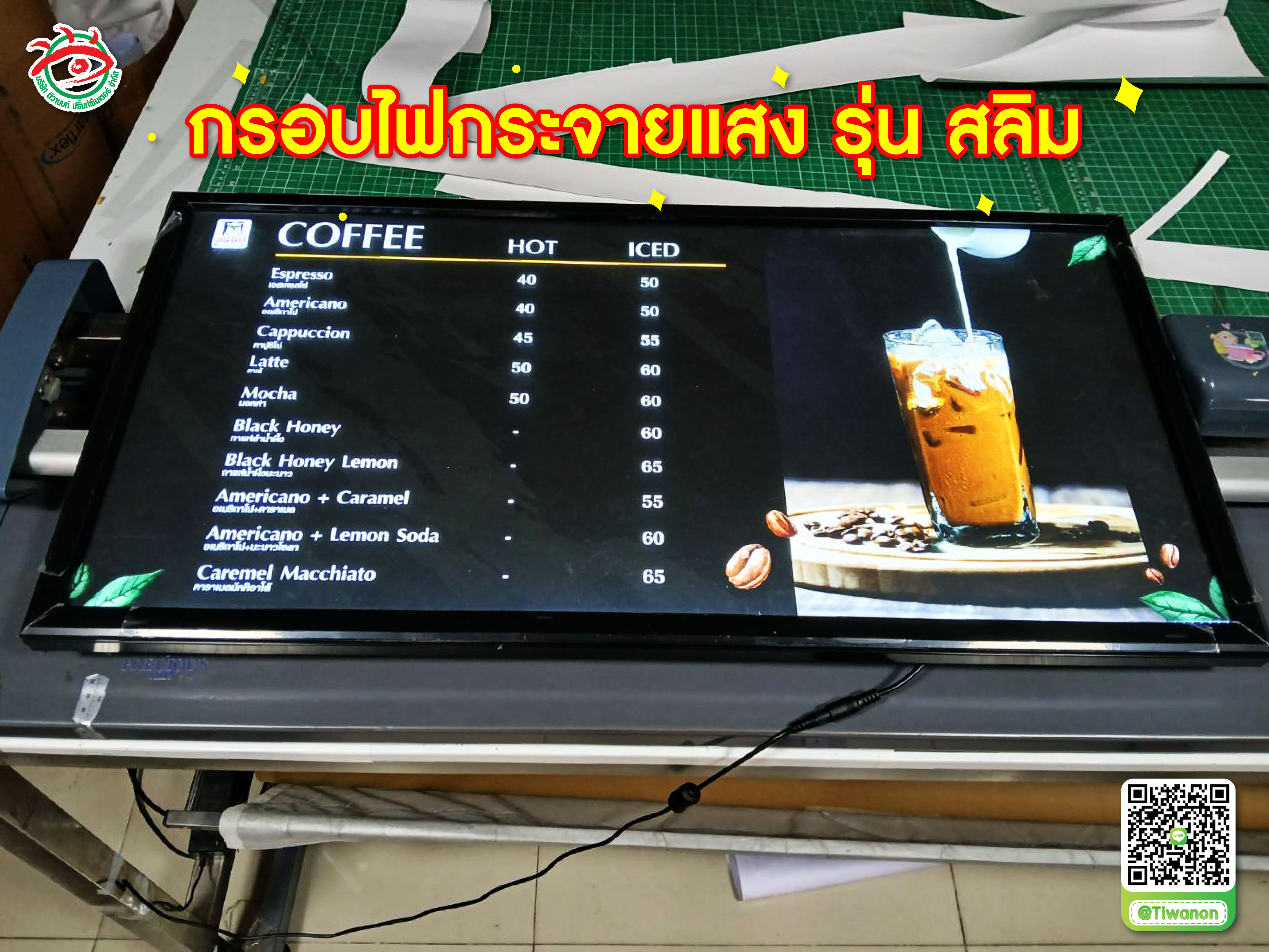 กรอบป้ายเมนูอาหาร รุ่นสลิมไลน์ฝาเปิด-ปิด 4ด้าน จากร้านป้ายติวานท์