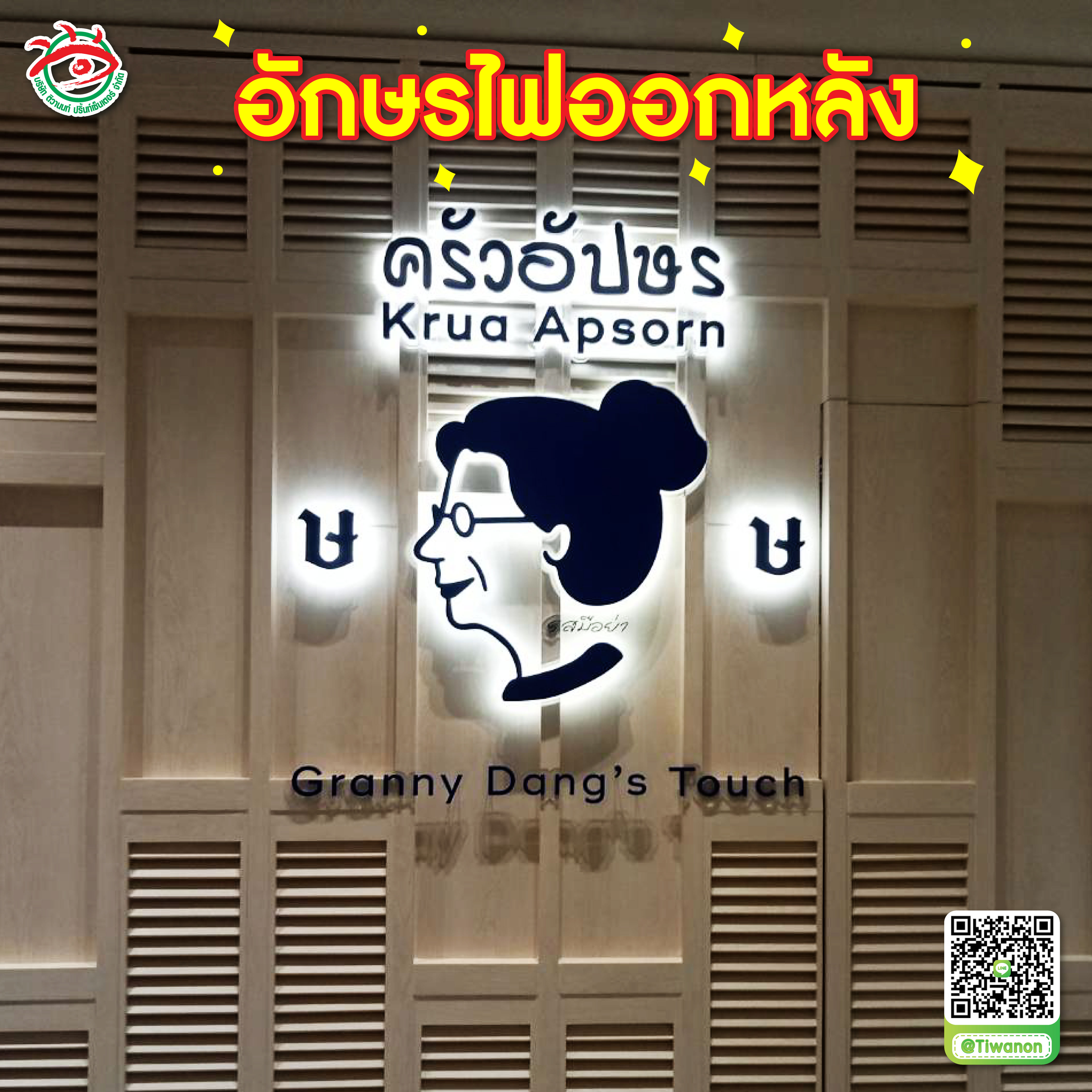 ป้ายอักษรไฟออกหลัง เพิ่มความโดดเด่นให้กับธุรกิจของคุณ ป้ายที่เห็นในภาพคือ ป้ายอักษรไฟออกหลัง Backlit Letter Sign ที่ออกแบบอย่างประณีตและติดตั้งไว้บริเวณหน้าร้าน "ครัวอัปษร (Krua Apsorn)" ซึ่งเป็นร้านอาหารชื่อดัง โดยป้ายนี้มีความโดดเด่นทั้งในเรื่องของดีไซน์ วัสดุ และการใช้แสงไฟเพื่อช่วยเพิ่มความน่าสนใจให้กับพื้นที่หน้าร้าน ป้ายอักษรไฟออกหลัง เป็นหนึ่งในรูปแบบของป้ายที่ได้รับความนิยมสูงสุดในปัจจุบัน เพราะช่วยสร้างความหรูหราและความมีระดับให้กับธุรกิจ ทั้งยังเป็นการเพิ่มความน่าจดจำให้กับแบรนด์ของคุณ