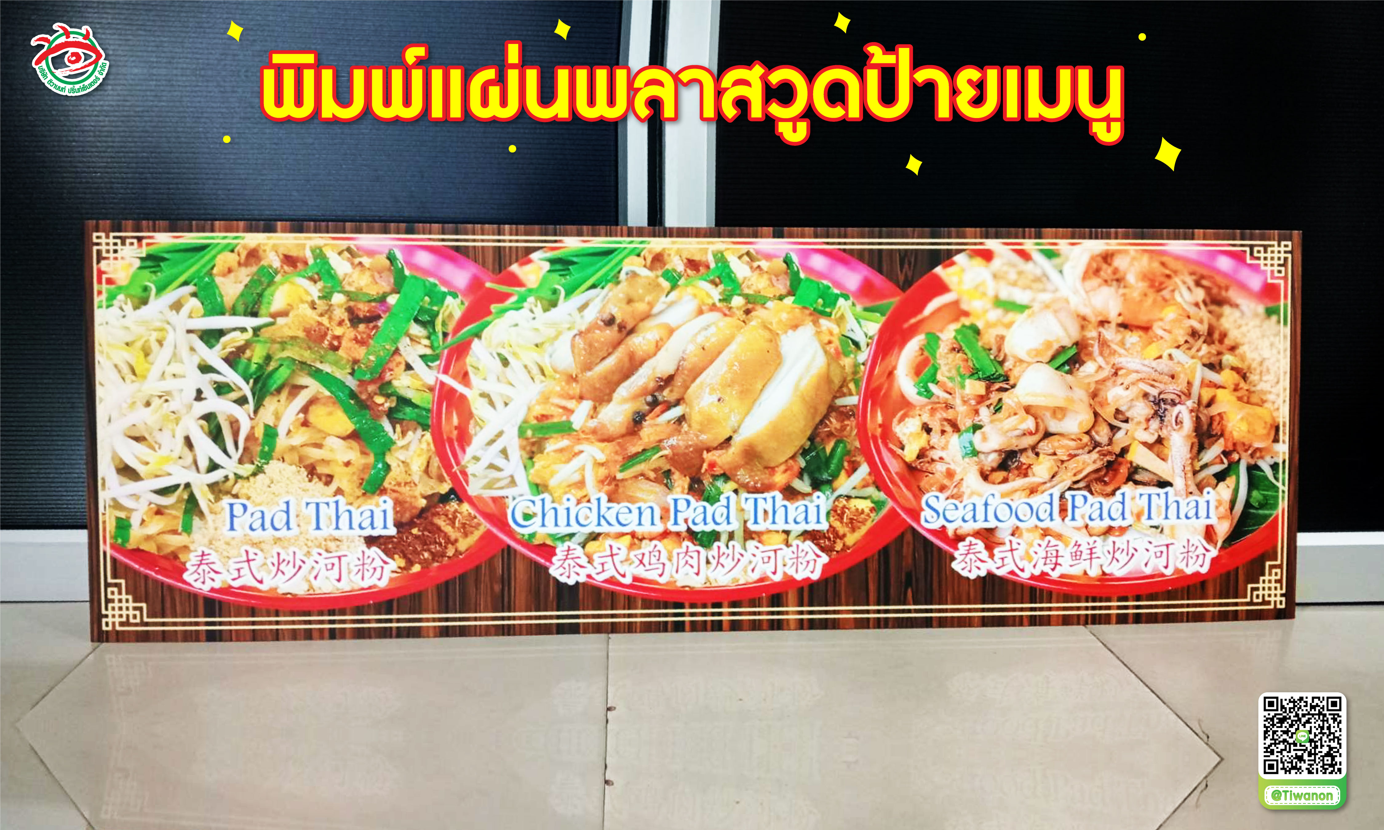 รายละเอียดป้ายเมนูอาหาร Pad Thai ที่ผลิตโดยร้านป้ายติวานนท์